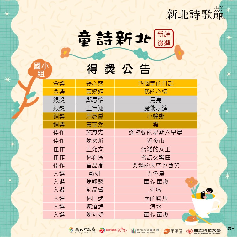 恭賀610林鈺恩參加「2025新北詩歌節」榮獲國小組佳作
